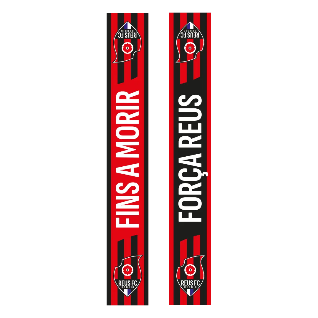 Bufanda Força Reus de doble cara amb disseny roig-i-negre, escut del club i el crit que ens identifica. Càlida, resistent i plena de sentiment ganxet.
