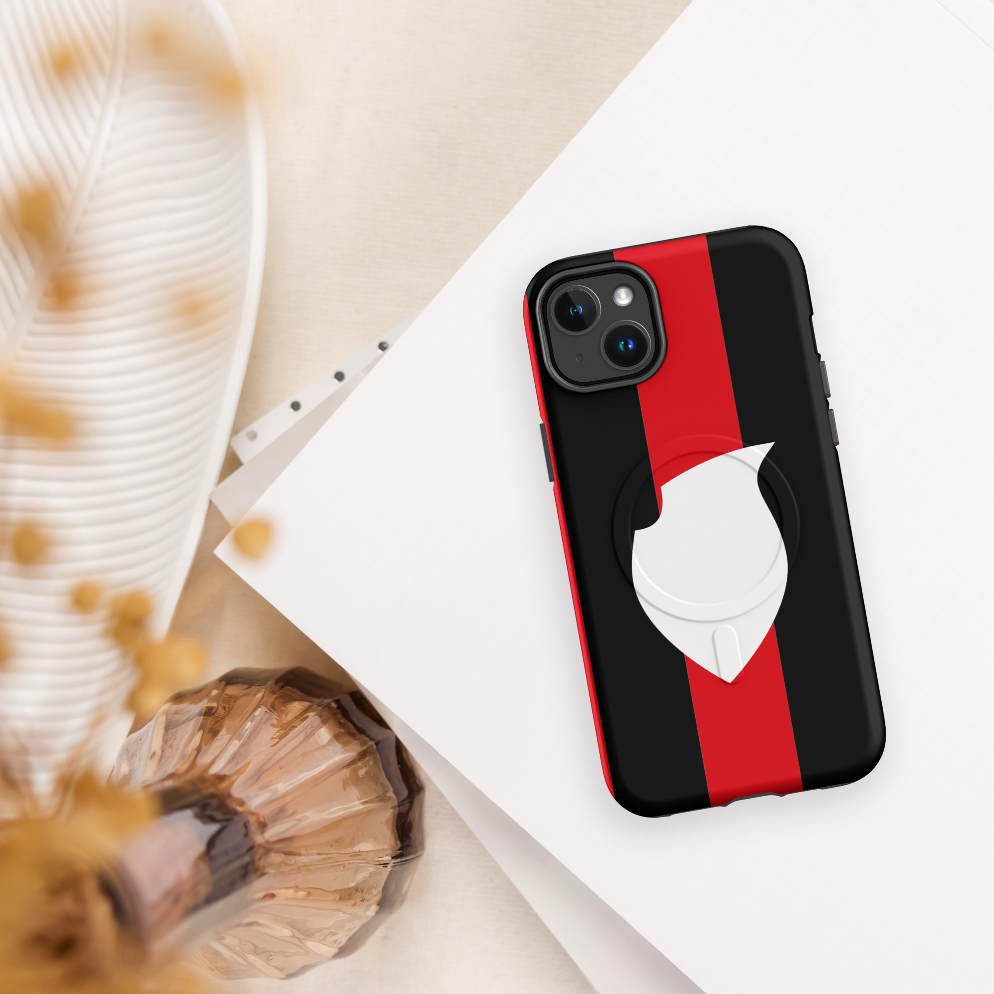 Protegeix el teu telèfon amb aquesta funda resistent de doble capa. La seva carcassa antixocs i el folre interior que absorbeix els cops mantenen el dispositiu protegit, mentre que els imants MagSafe® integrats garanteixen una subjecció segura i una càrrega sense fils més ràpida.